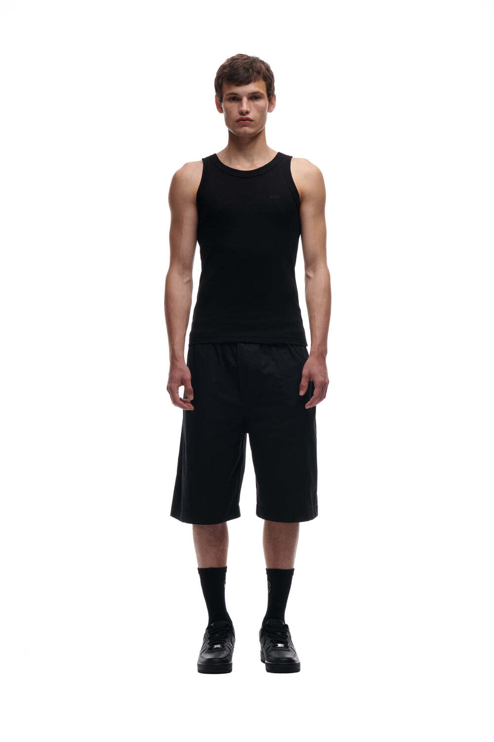WAFFLE KNIT TANK TOP BLACK